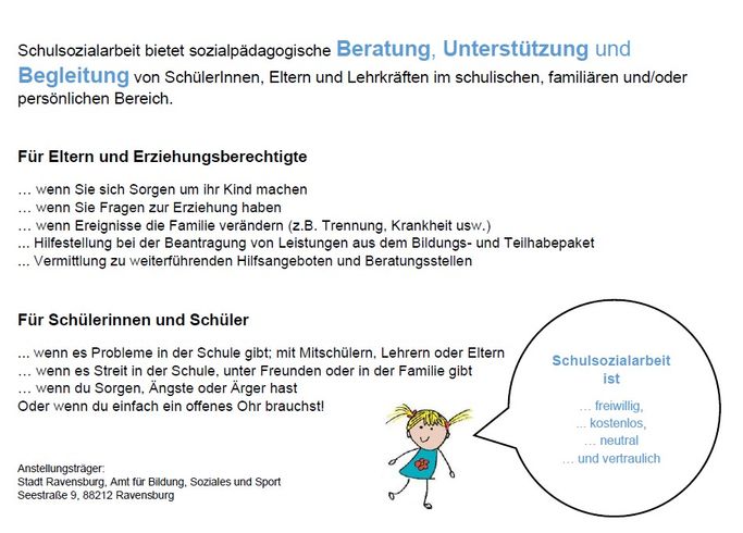 weitere Informationen zur Schulsozialarbeit gibt es auf der Homepage der Stadt Ravensburg: