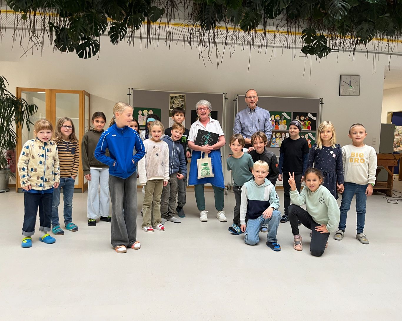 Für einen schwungvollen Auftakt sorgten die Viertklässler. Die Klasse 4b trug ein herzliches Gedicht zur Begrüßung vor, während die 4a in einem kleinen Schauspiel die Abenteuer einer Schultasche lebendig werden ließ – ein treuer Begleiter durch alle vier Grundschuljahre, der sogar vergessene Pausenbrote übersteht. Anschließend präsentierten beide vierten Klassen gemeinsam ein eigens für diesen Anlass umgedichtetes Lied.