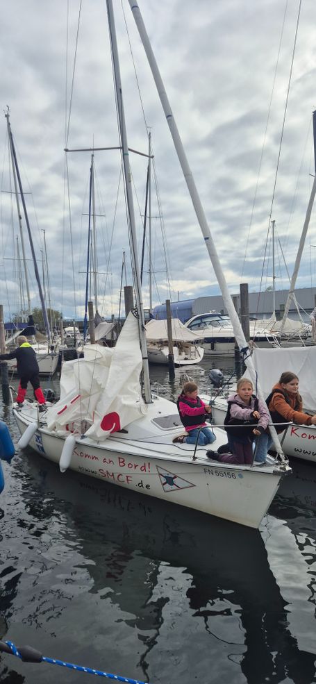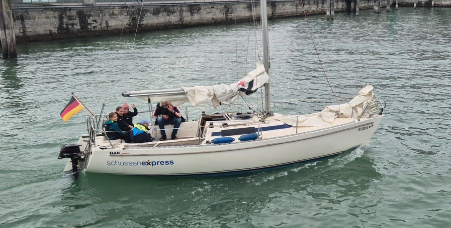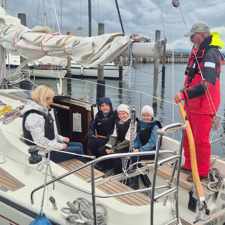 Alle waren aufgeregt und als endlich der große Tag kam, haben wir es fast nicht mehr ausgehalten. Endlich war die Schule aus und manche Kinder sind in den Hort gegangen, um dort zu essen, die anderen sind bei unserer Klassenlehrerin geblieben und haben ihr mitgebrachtes Essen gegessen. Dann kamen endlich die Eltern von vier Kindern aus unserer Klasse, um uns zum Messehafen nach Friedrichshafen mitzunehmen. Als wir da waren, wurden wir in unsere Gruppen auf die Boote aufgeteilt. Dort waren ein bis zwei Skipper, die uns gecoacht haben. Diese Leute waren sehr nett. Manche Gruppen durften auch mal steuern. Die Segel hissten wir auch. Es ist zum Glück